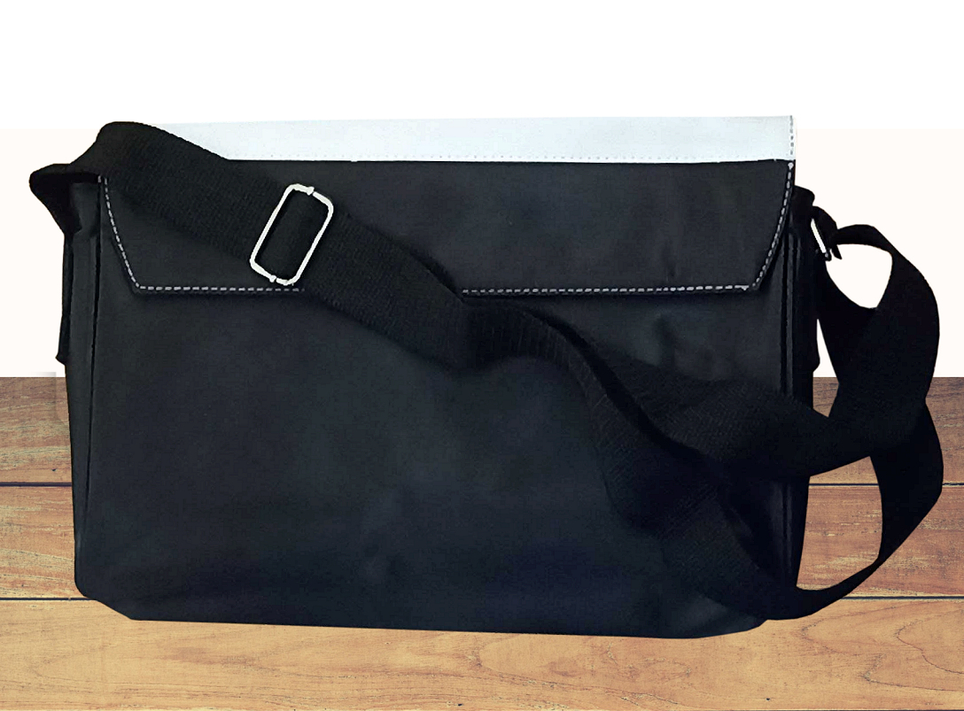 A medium image bag made from a smooth microfibre fabric complete with an inner compartment and adjustable shoulder straps.